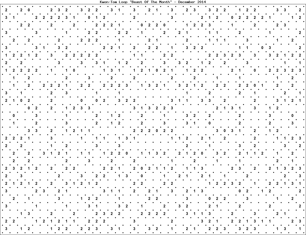 The "Beast Of The Month" is a very large puzzle, too big to display in the usual Kwon-Tom Loop interactive format. It's presented here as an image which you can print off and solve on paper.Printable Beast December 2014(solution)