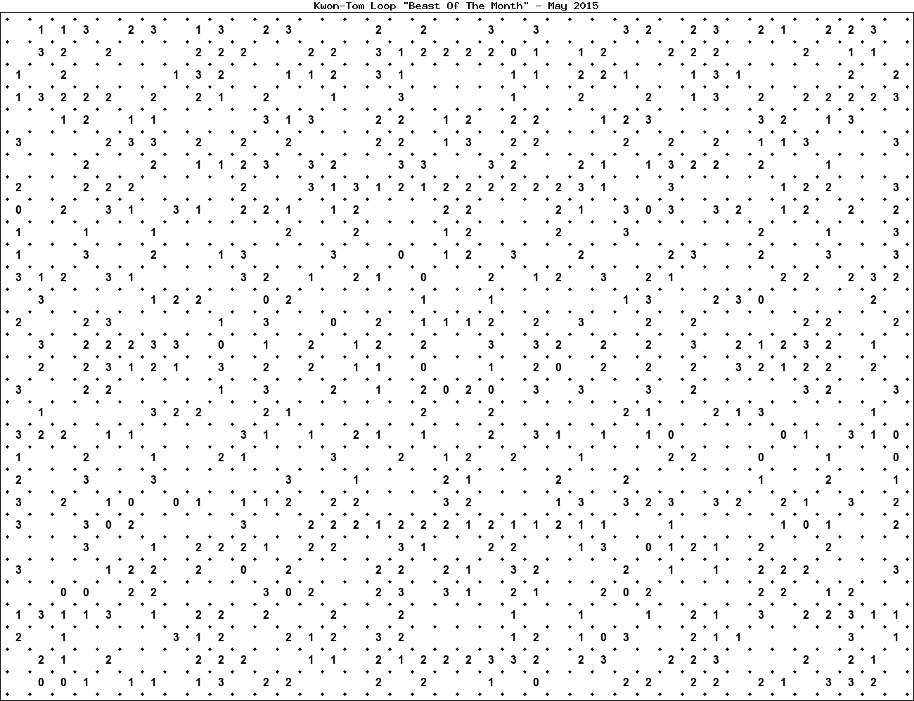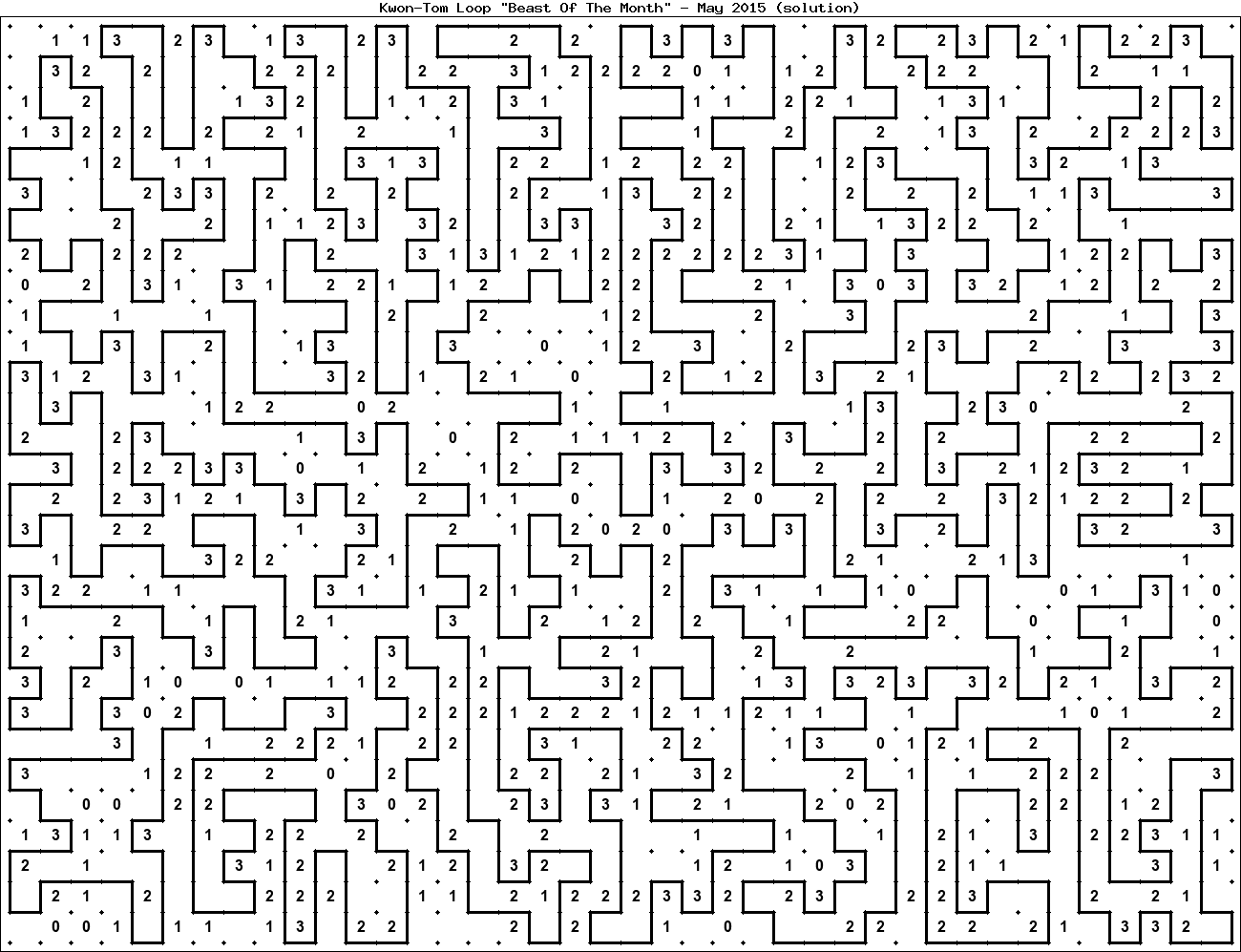 The "Beast Of The Month" is a very large puzzle, too big to display in the usual Kwon-Tom Loop interactive format. It's presented here as an image which you can print off and solve on paper.Printable Beast May 2015(solution)