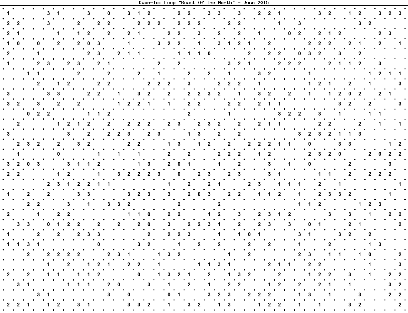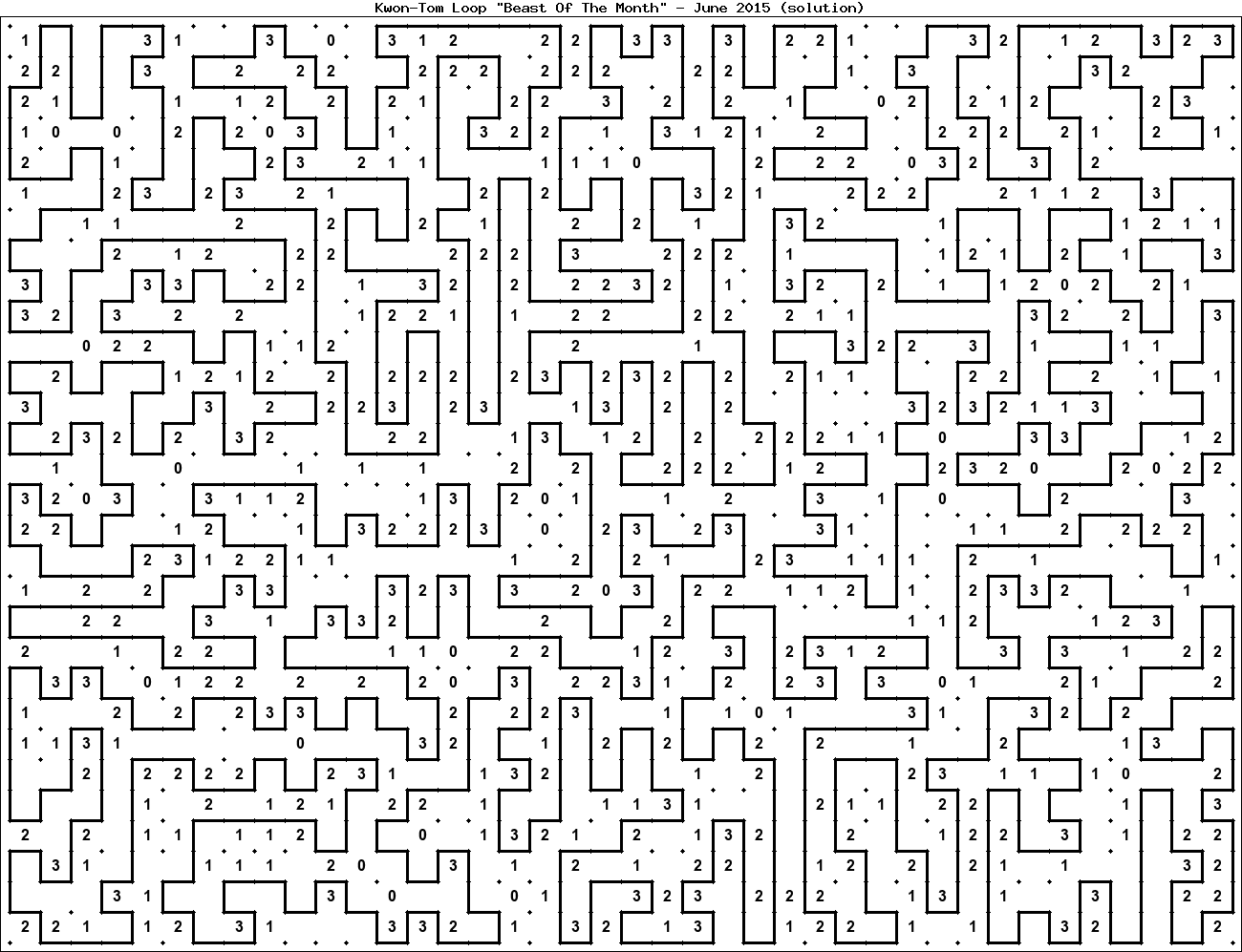 The "Beast Of The Month" is a very large puzzle, too big to display in the usual Kwon-Tom Loop interactive format. It's presented here as an image which you can print off and solve on paper.Printable Beast June 2015(solution)