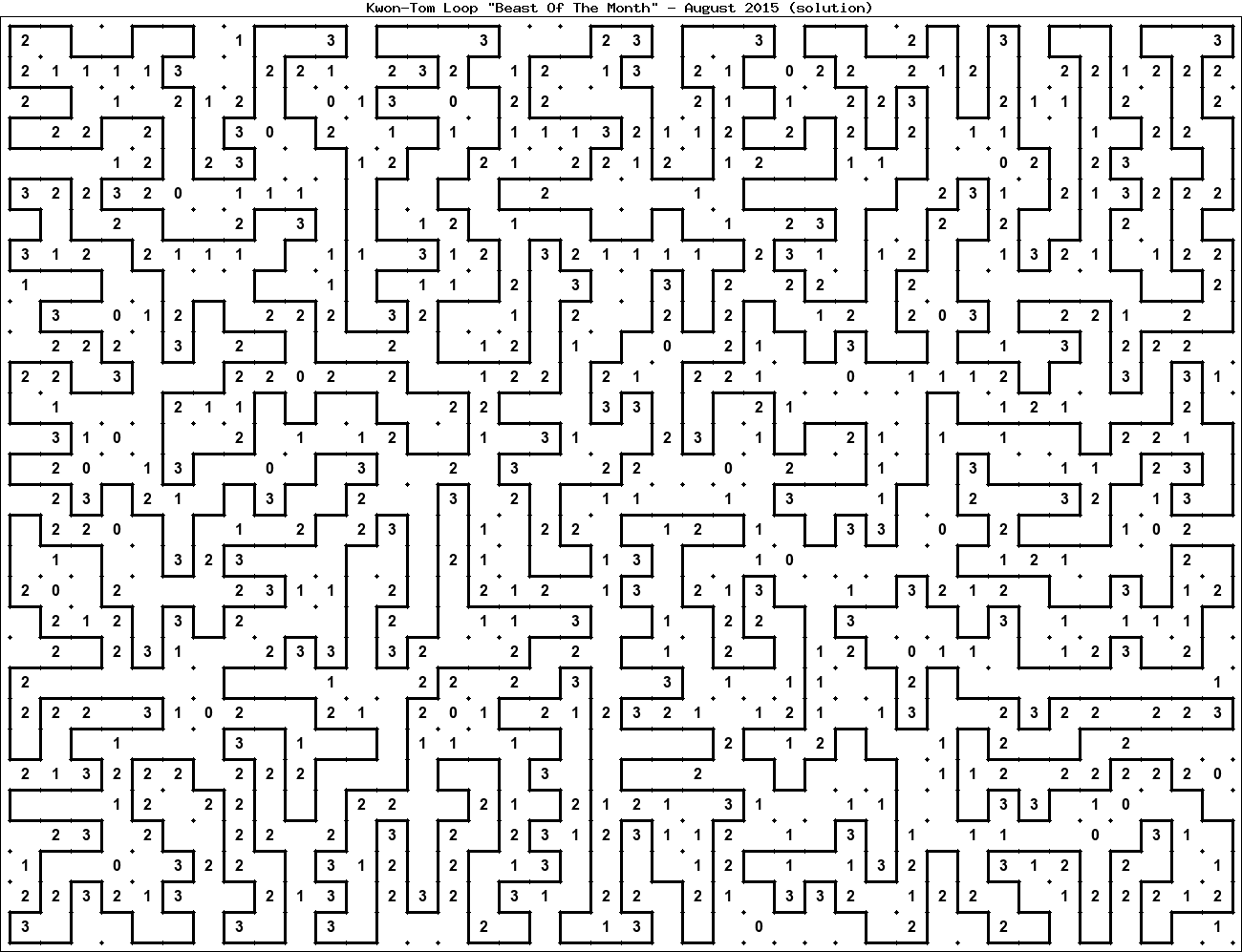 The "Beast Of The Month" is a very large puzzle, too big to display in the usual Kwon-Tom Loop interactive format. It's presented here as an image which you can print off and solve on paper.Printable Beast August 2015(solution)