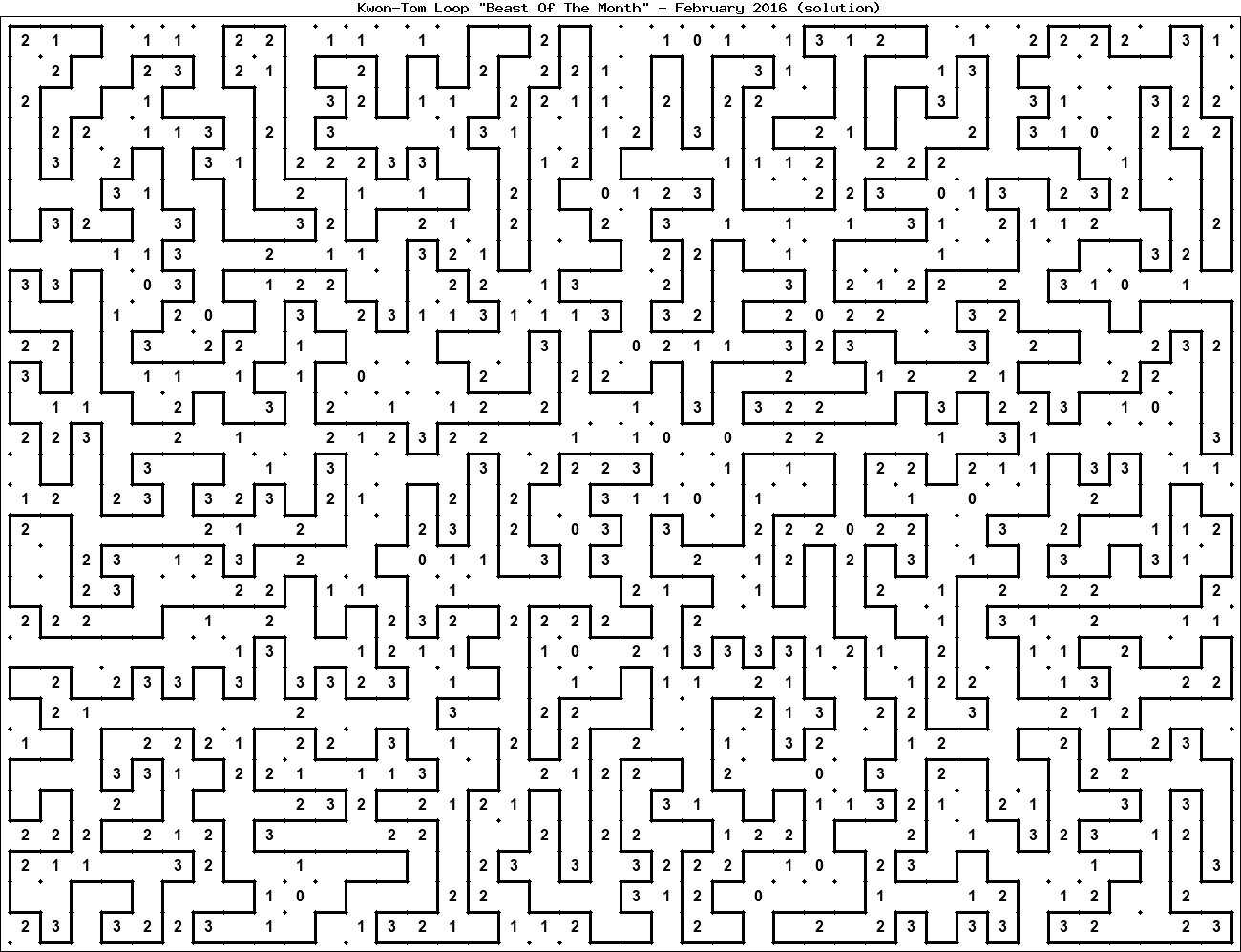 The "Beast Of The Month" is a very large puzzle, too big to display in the usual Kwon-Tom Loop interactive format. It's presented here as an image which you can print off and solve on paper.Printable Beast February 2016(solution)