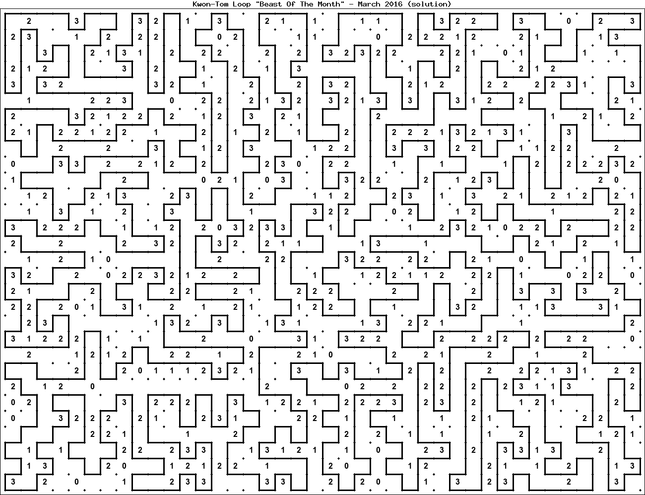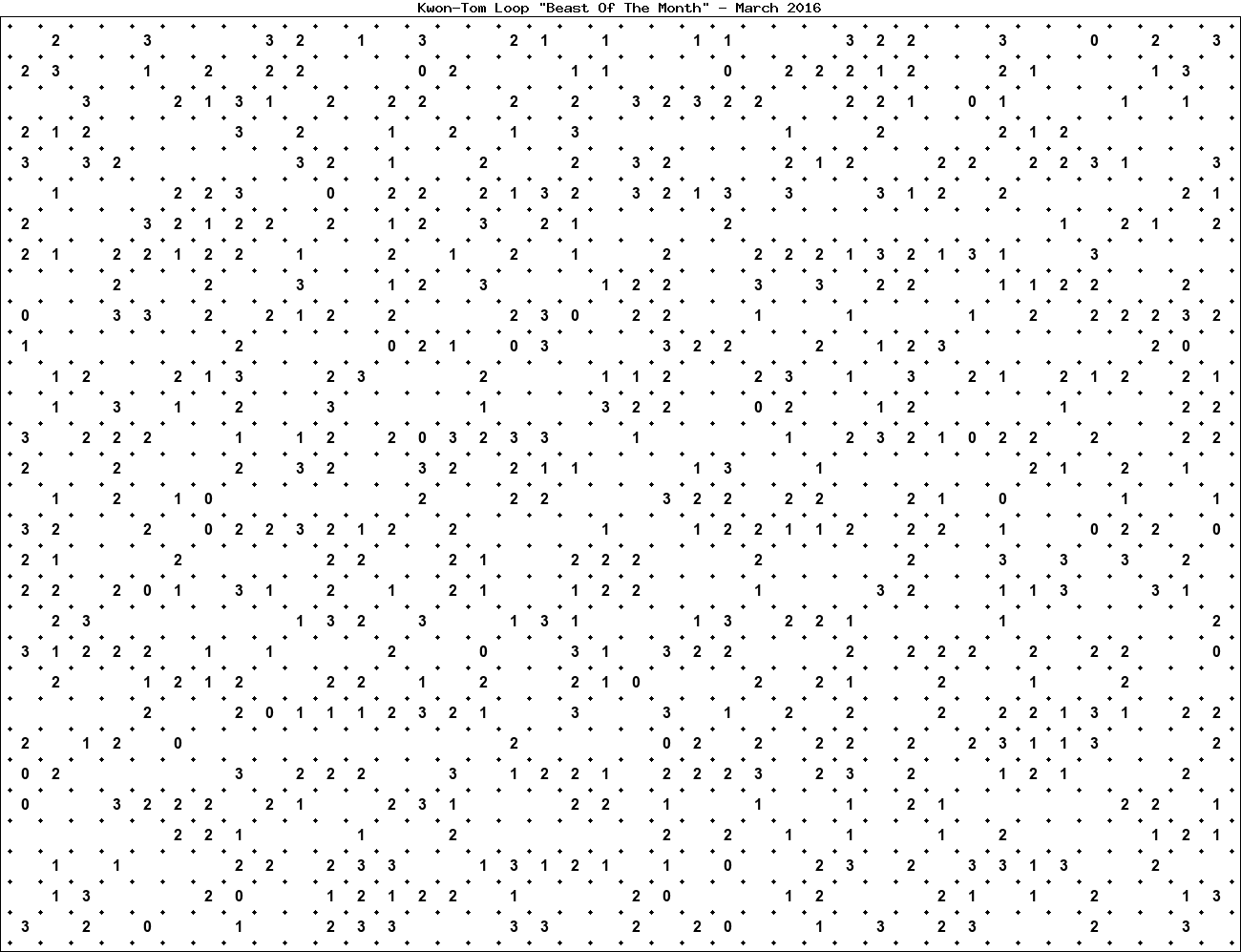 The "Beast Of The Month" is a very large puzzle, too big to display in the usual Kwon-Tom Loop interactive format. It's presented here as an image which you can print off and solve on paper.Printable Beast March 2016(solution)