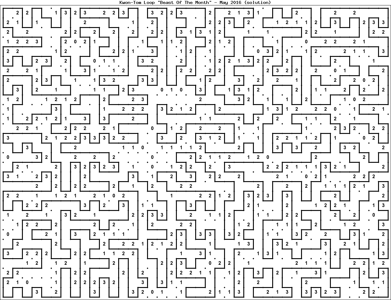 The "Beast Of The Month" is a very large puzzle, too big to display in the usual Kwon-Tom Loop interactive format. It's presented here as an image which you can print off and solve on paper.Printable Beast May 2016(solution)