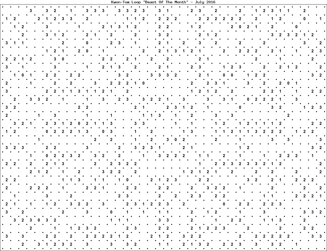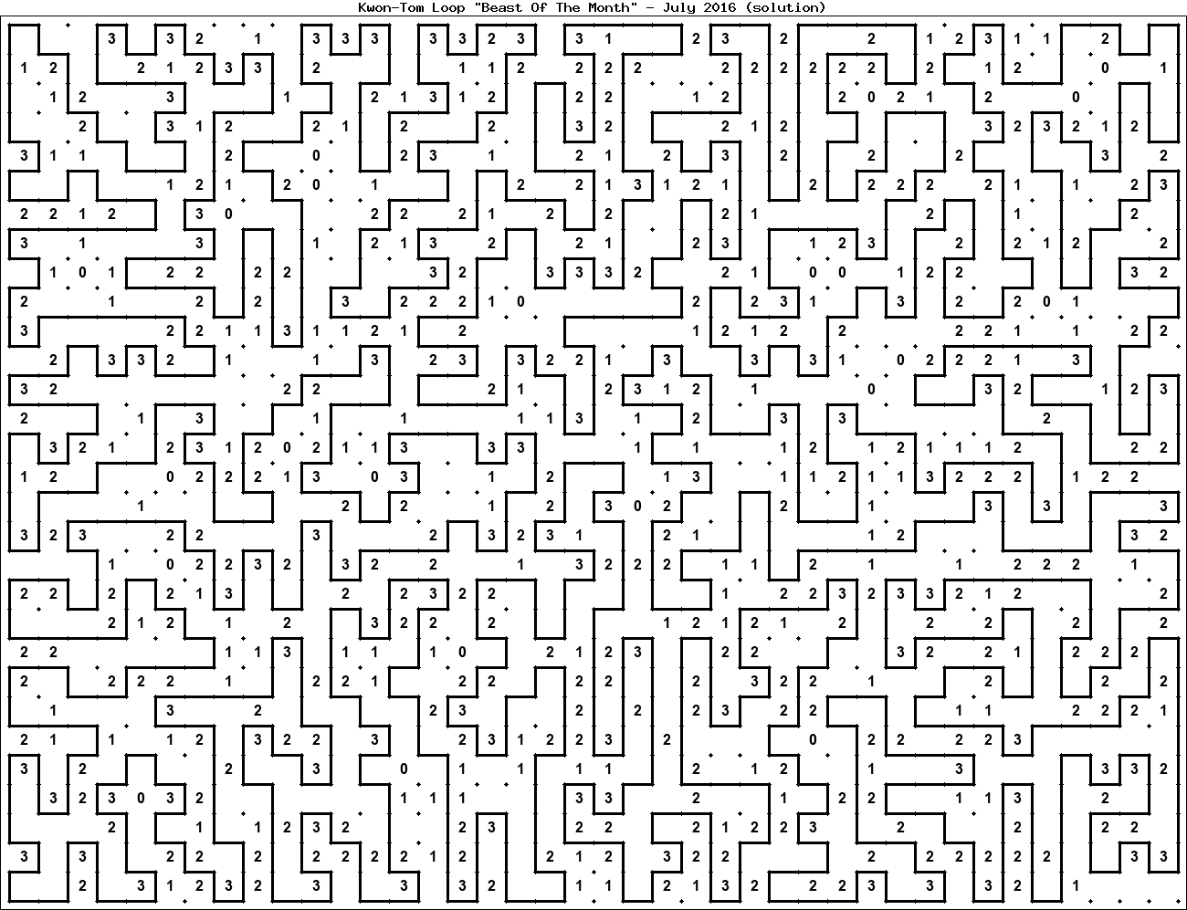 The "Beast Of The Month" is a very large puzzle, too big to display in the usual Kwon-Tom Loop interactive format. It's presented here as an image which you can print off and solve on paper.Printable Beast July 2016(solution)