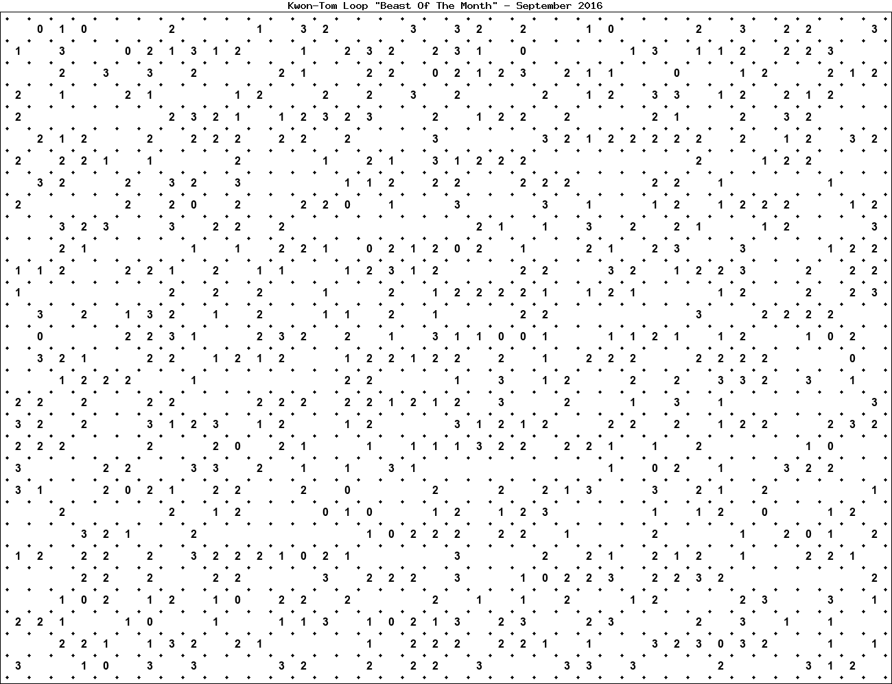 The "Beast Of The Month" is a very large puzzle, too big to display in the usual Kwon-Tom Loop interactive format. It's presented here as an image which you can print off and solve on paper.Printable Beast September 2016(solution)