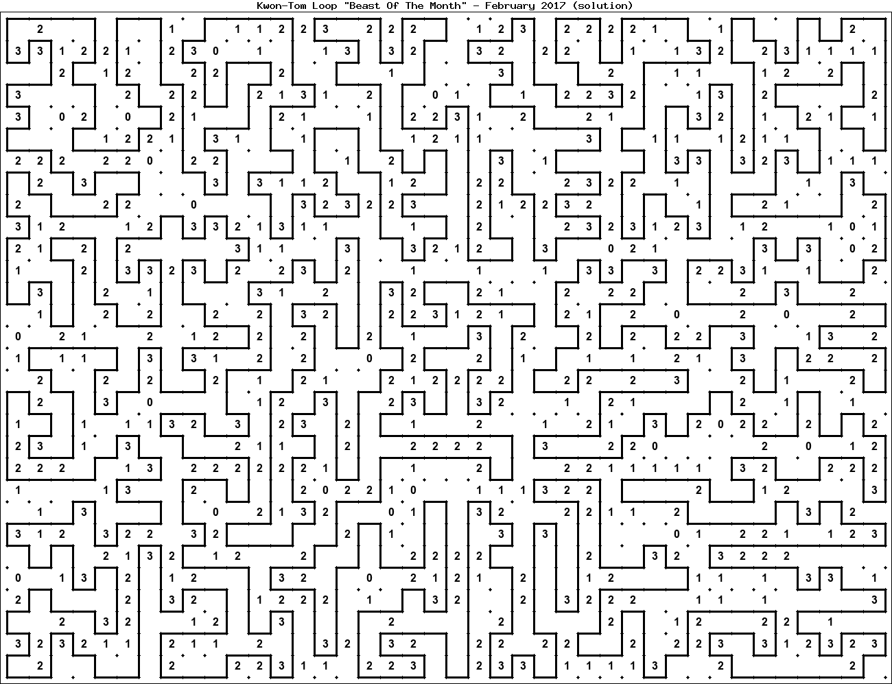 The "Beast Of The Month" is a very large puzzle, too big to display in the usual Kwon-Tom Loop interactive format. It's presented here as an image which you can print off and solve on paper.Printable Beast February 2017(solution)