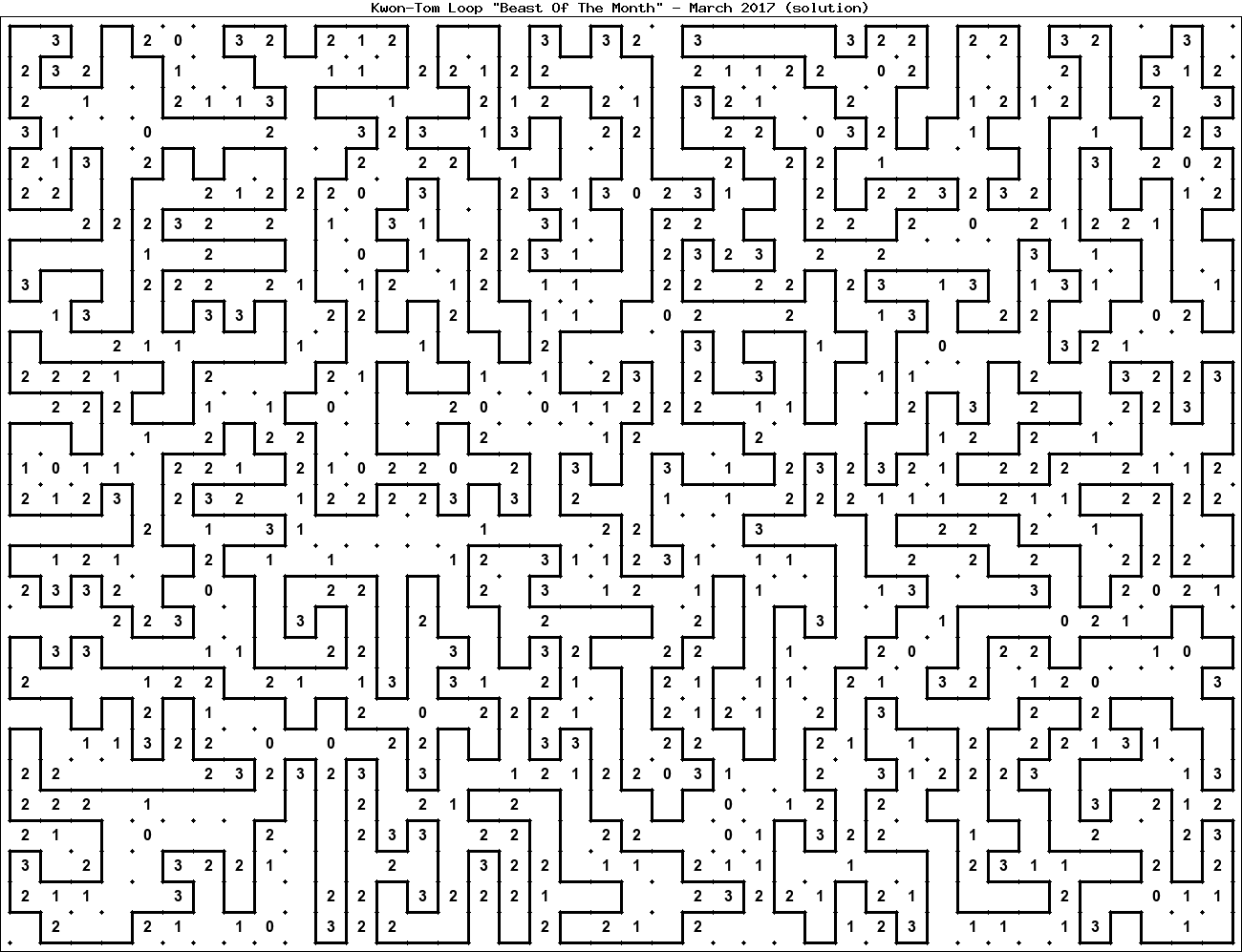 The "Beast Of The Month" is a very large puzzle, too big to display in the usual Kwon-Tom Loop interactive format. It's presented here as an image which you can print off and solve on paper.Printable Beast March 2017(solution)