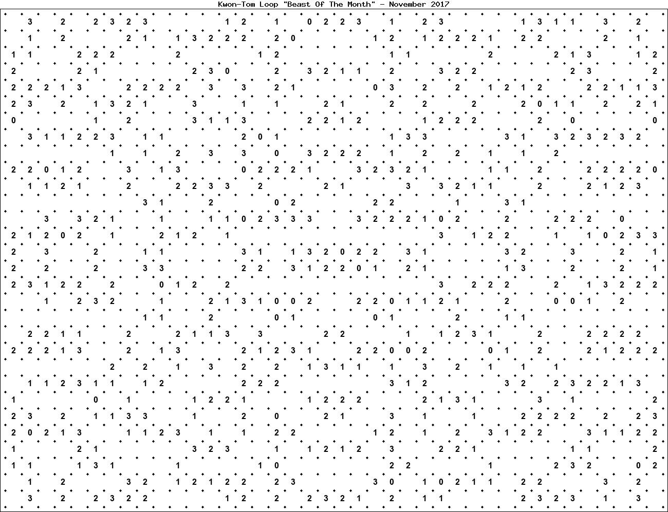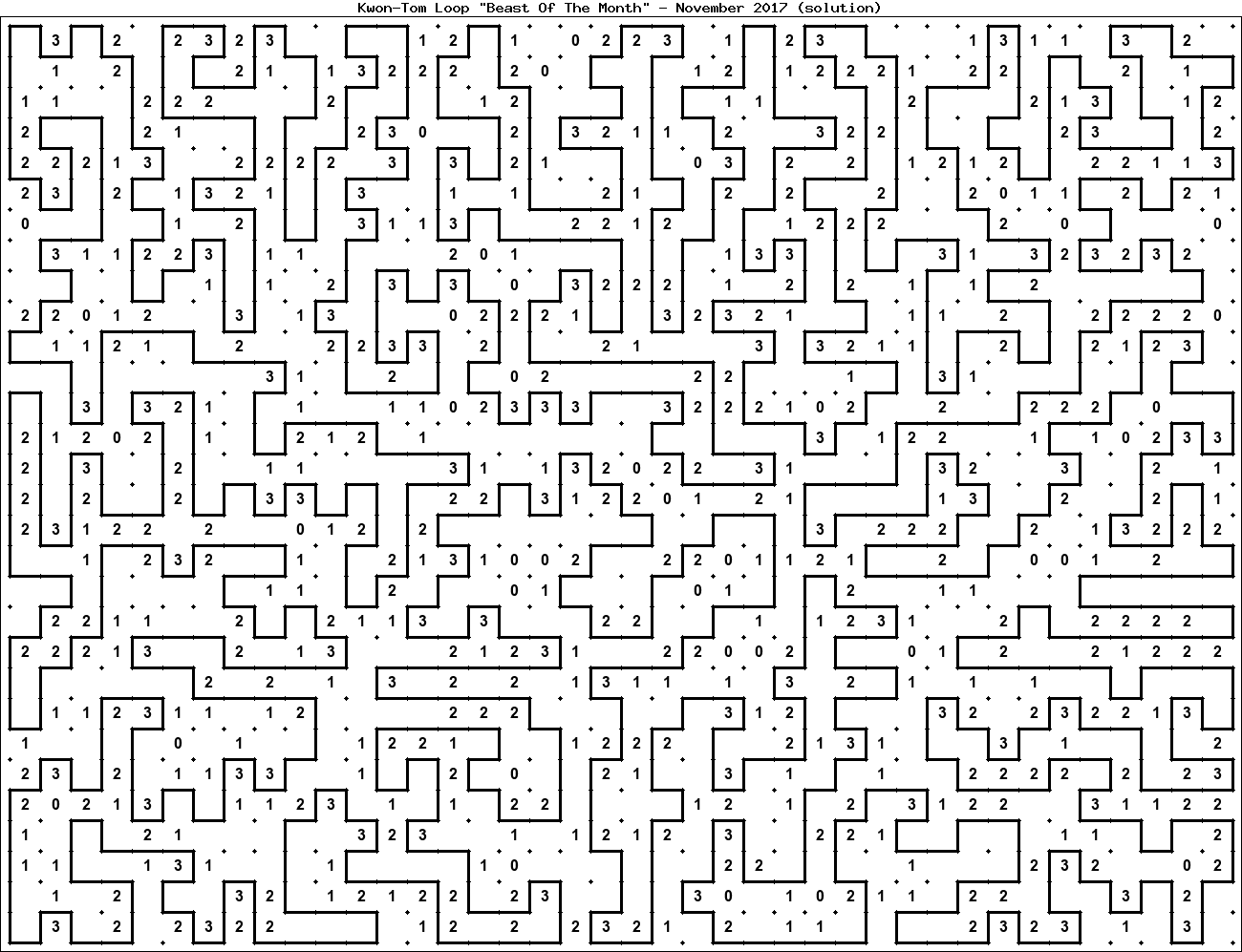 The "Beast Of The Month" is a very large puzzle, too big to display in the usual Kwon-Tom Loop interactive format. It's presented here as an image which you can print off and solve on paper.Printable Beast November 2017(solution)