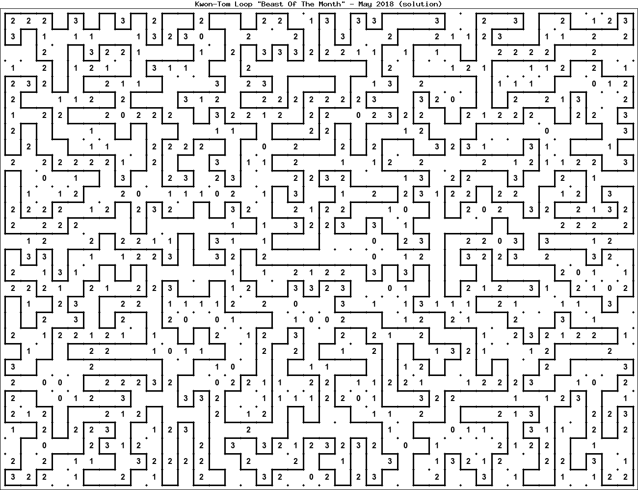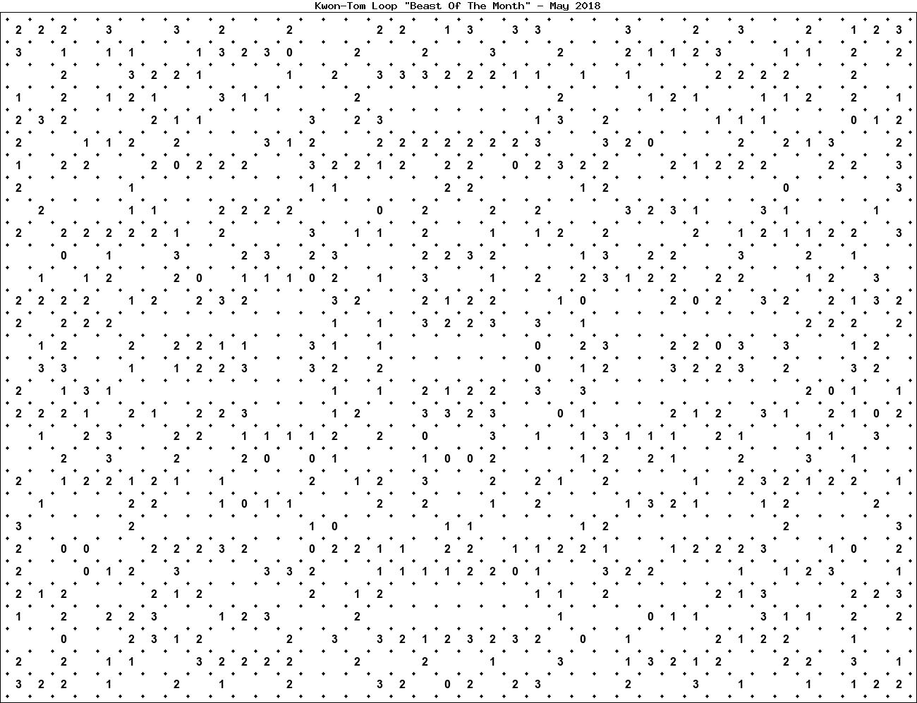 The "Beast Of The Month" is a very large puzzle, too big to display in the usual Kwon-Tom Loop interactive format. It's presented here as an image which you can print off and solve on paper.Printable Beast May 2018(solution)