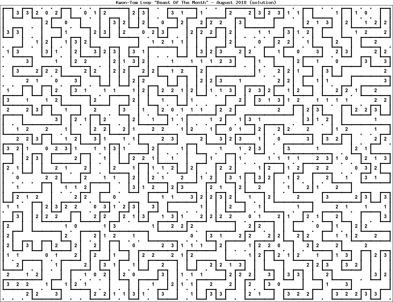 The "Beast Of The Month" is a very large puzzle, too big to display in the usual Kwon-Tom Loop interactive format. It's presented here as an image which you can print off and solve on paper.Printable Beast August 2018(solution)