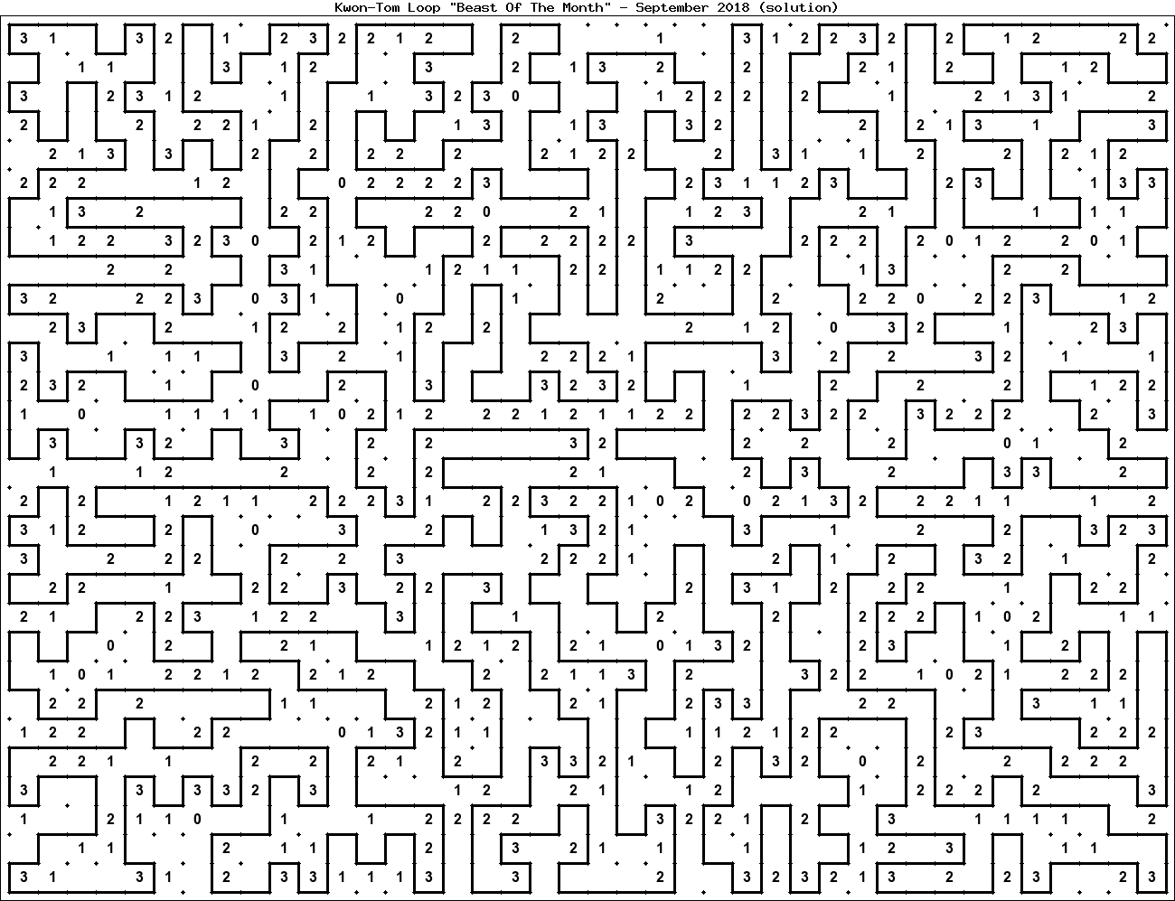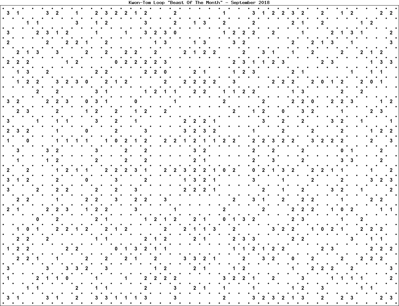 The "Beast Of The Month" is a very large puzzle, too big to display in the usual Kwon-Tom Loop interactive format. It's presented here as an image which you can print off and solve on paper.Printable Beast September 2018(solution)