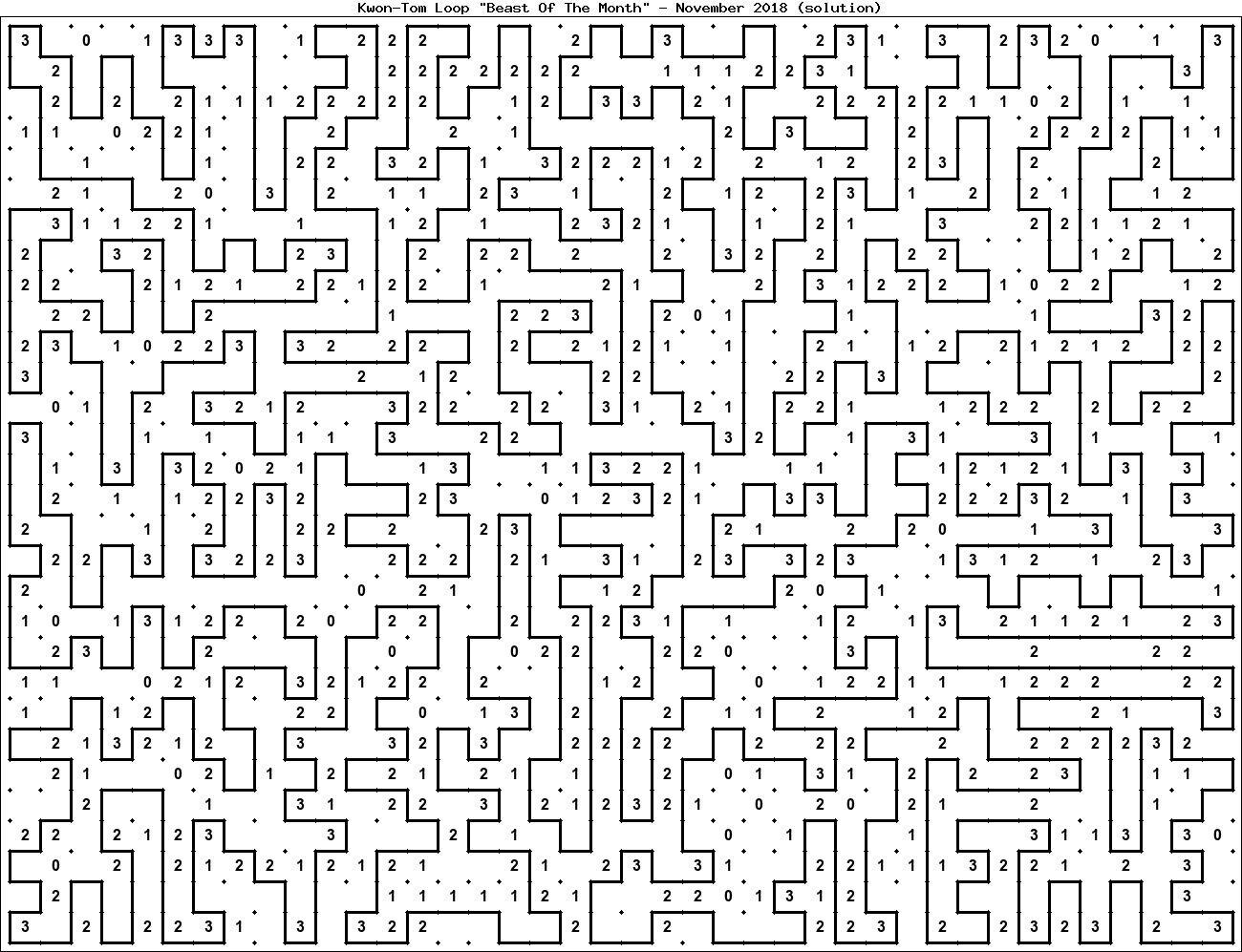 The "Beast Of The Month" is a very large puzzle, too big to display in the usual Kwon-Tom Loop interactive format. It's presented here as an image which you can print off and solve on paper.Printable Beast November 2018(solution)
