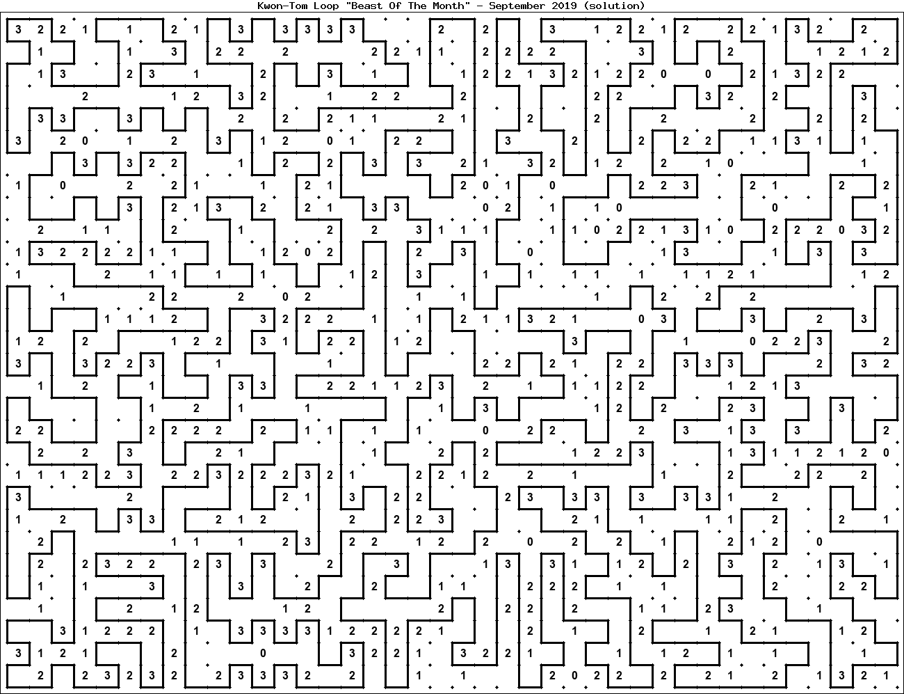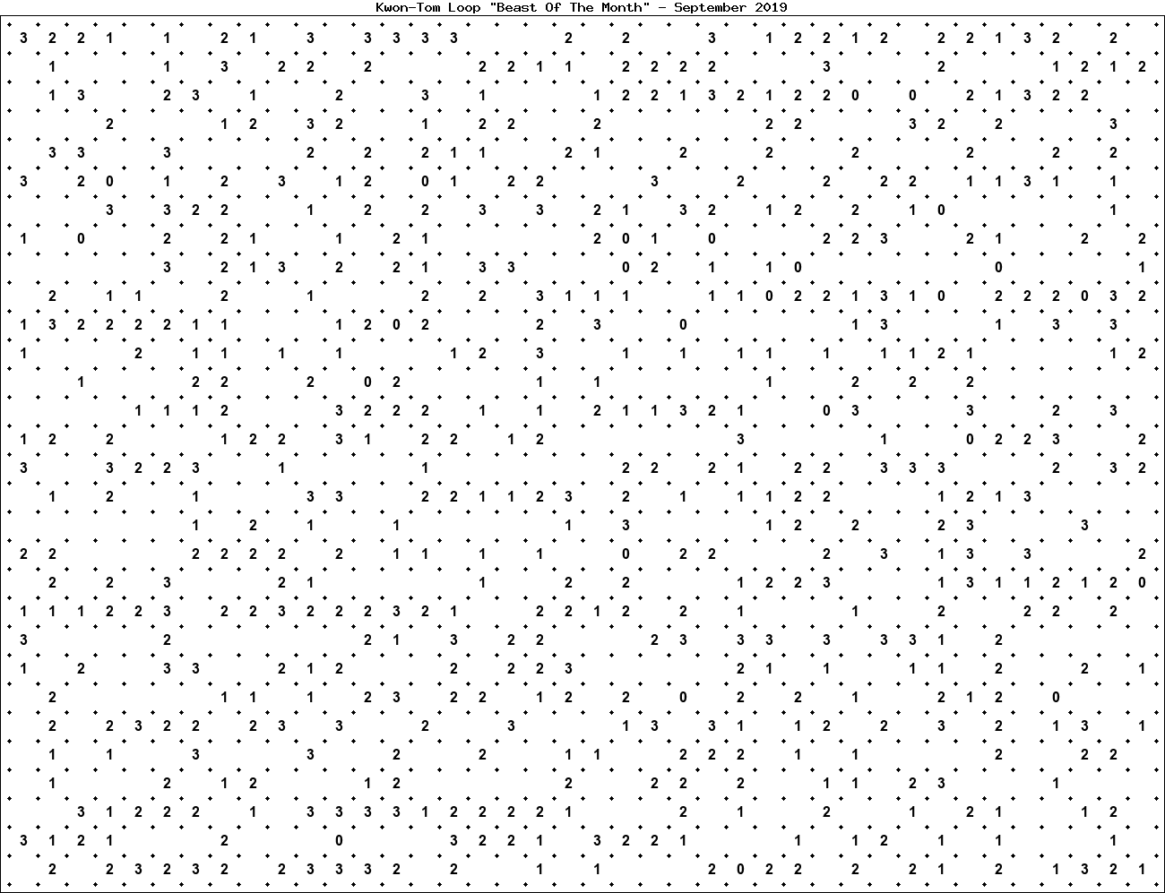 The "Beast Of The Month" is a very large puzzle, too big to display in the usual Kwon-Tom Loop interactive format. It's presented here as an image which you can print off and solve on paper.Printable Beast September 2019(solution)