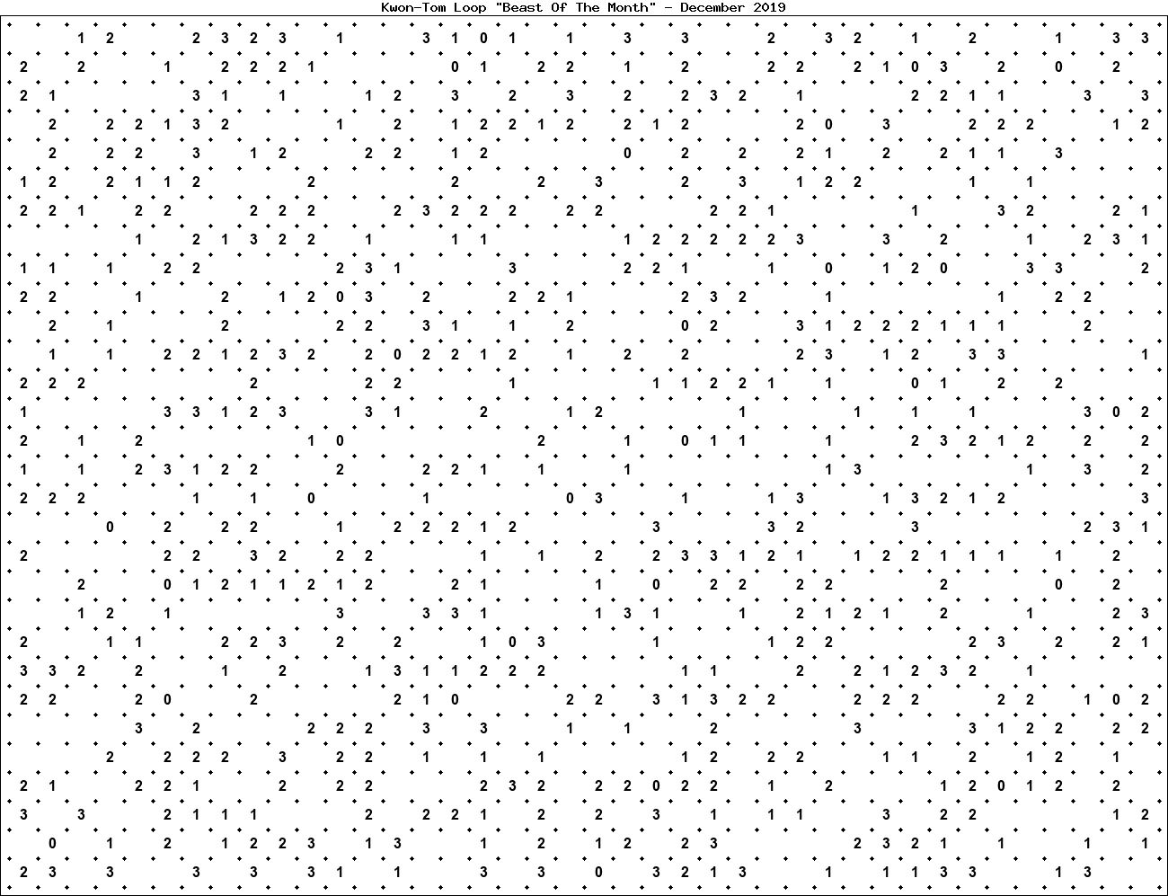 The "Beast Of The Month" is a very large puzzle, too big to display in the usual Kwon-Tom Loop interactive format. It's presented here as an image which you can print off and solve on paper.Printable Beast December 2019(solution)