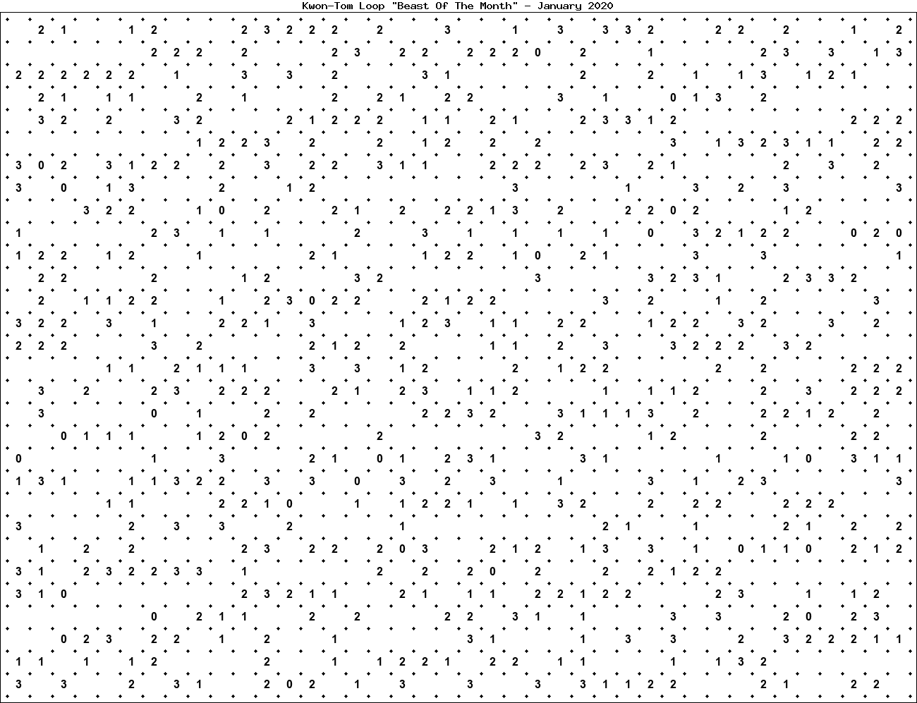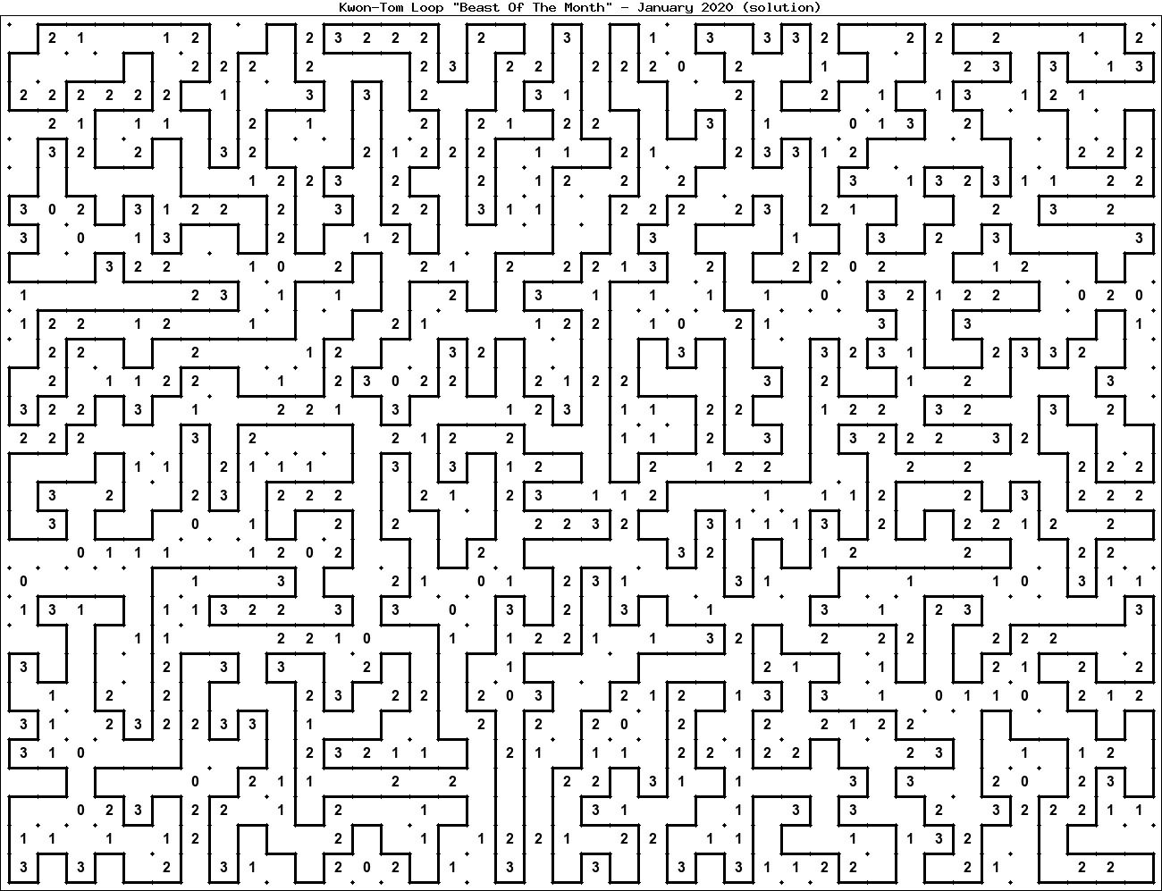 The "Beast Of The Month" is a very large puzzle, too big to display in the usual Kwon-Tom Loop interactive format. It's presented here as an image which you can print off and solve on paper.Printable Beast January 2020(solution)