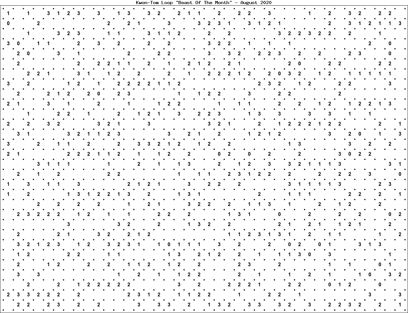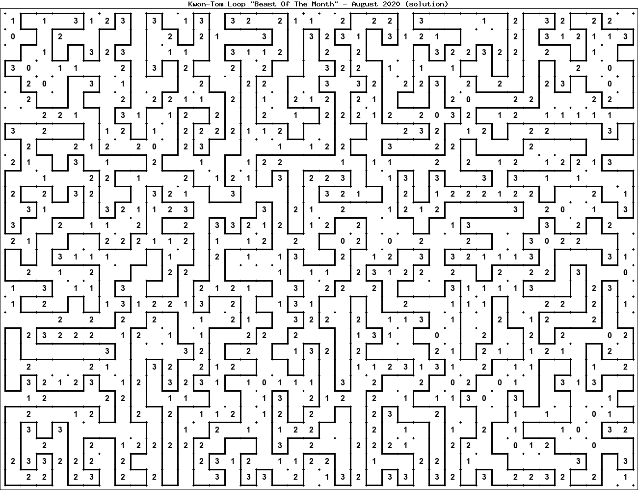 The "Beast Of The Month" is a very large puzzle, too big to display in the usual Kwon-Tom Loop interactive format. It's presented here as an image which you can print off and solve on paper.Printable Beast August 2020(solution)