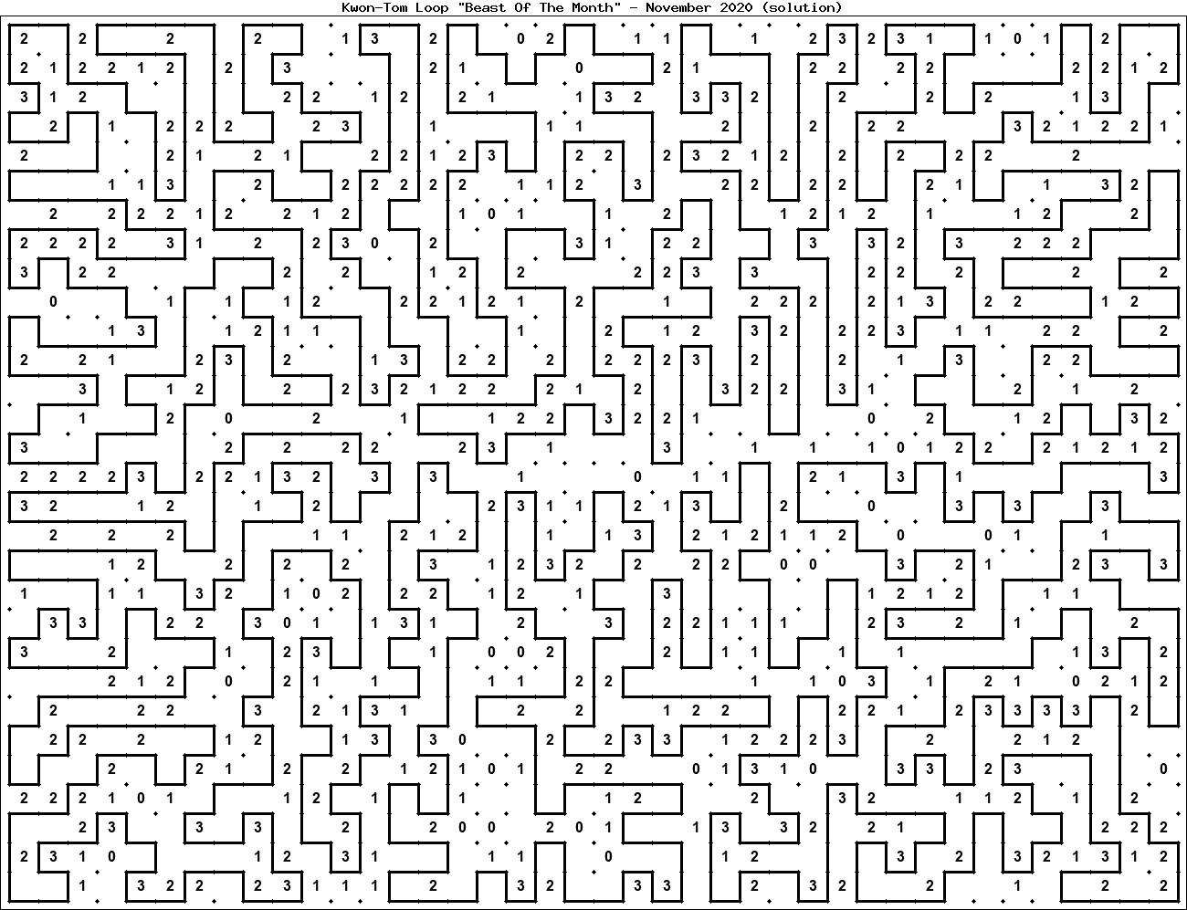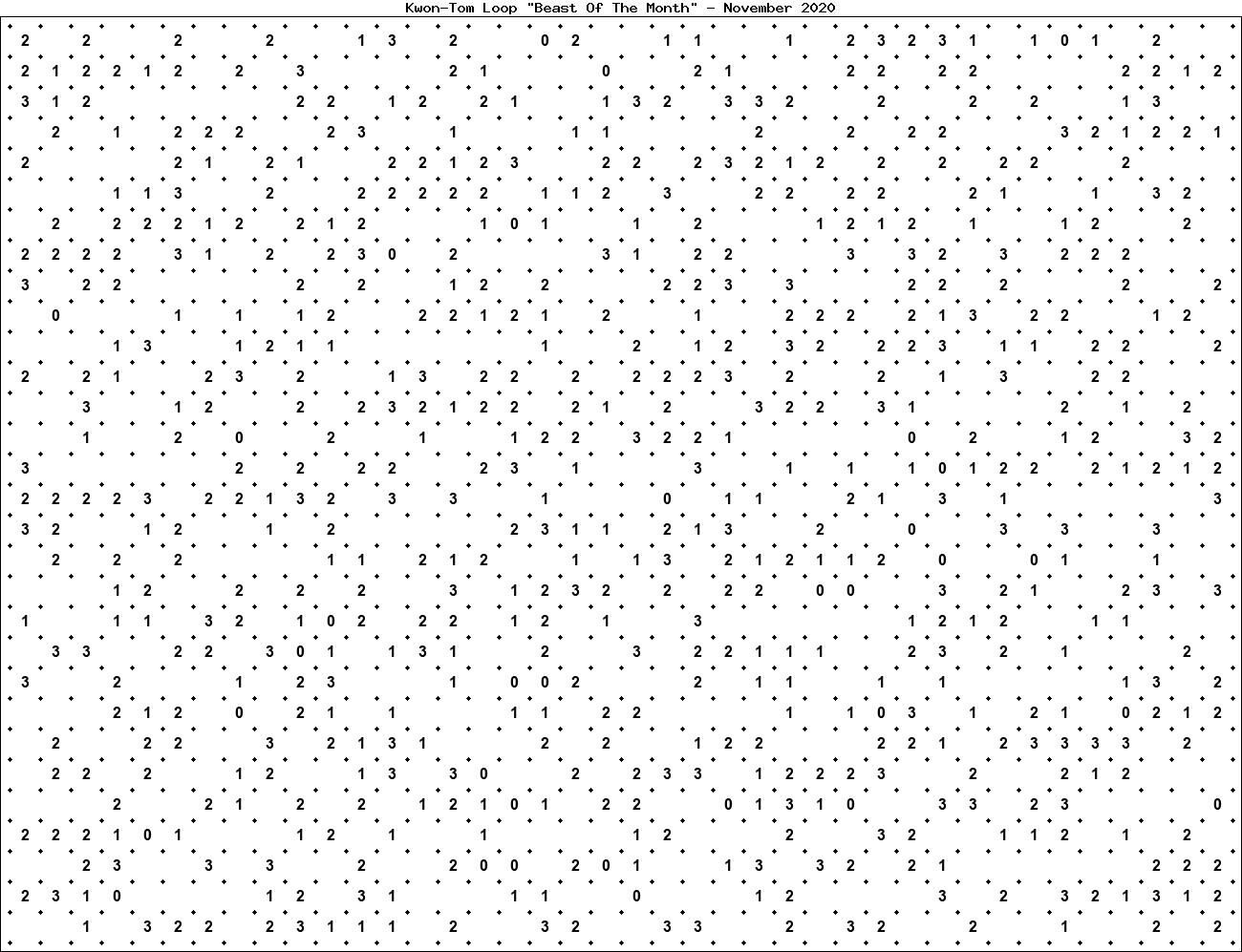 The "Beast Of The Month" is a very large puzzle, too big to display in the usual Kwon-Tom Loop interactive format. It's presented here as an image which you can print off and solve on paper.Printable Beast November 2020(solution)