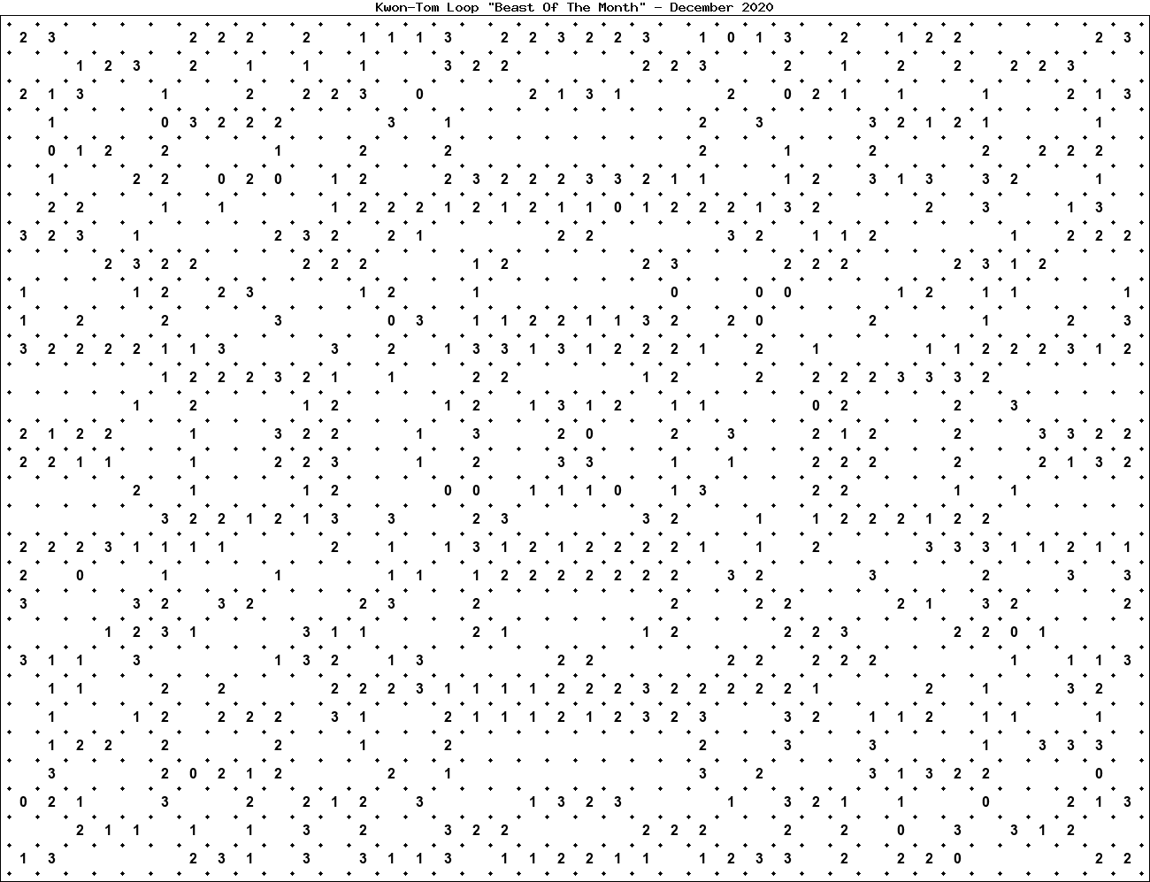 The "Beast Of The Month" is a very large puzzle, too big to display in the usual Kwon-Tom Loop interactive format. It's presented here as an image which you can print off and solve on paper.Printable Beast December 2020(solution)