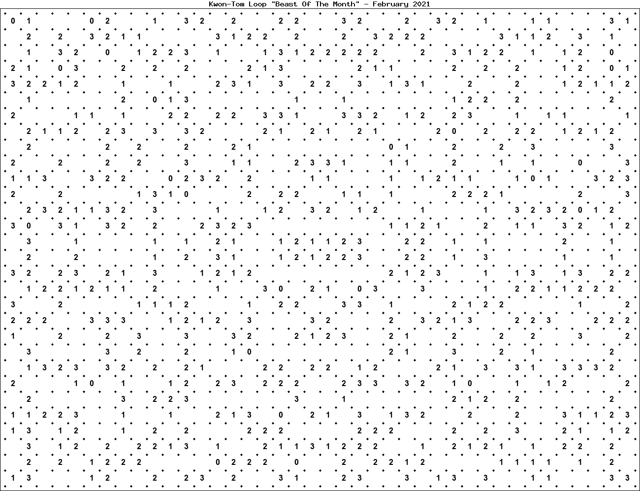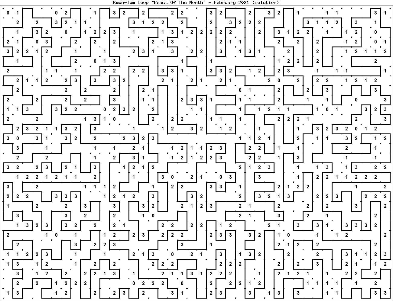 The "Beast Of The Month" is a very large puzzle, too big to display in the usual Kwon-Tom Loop interactive format. It's presented here as an image which you can print off and solve on paper.Printable Beast February 2021(solution)