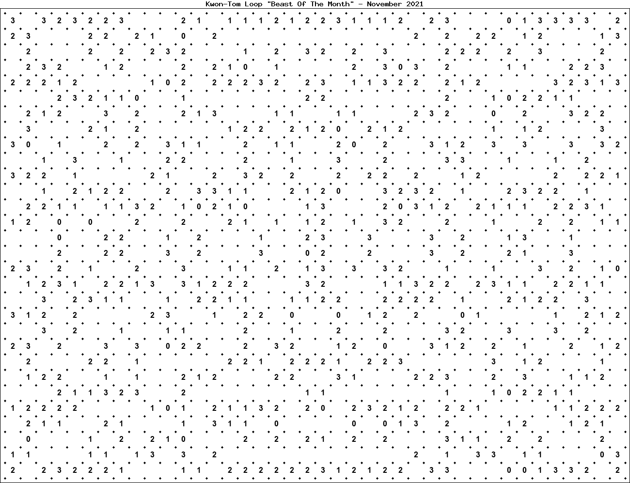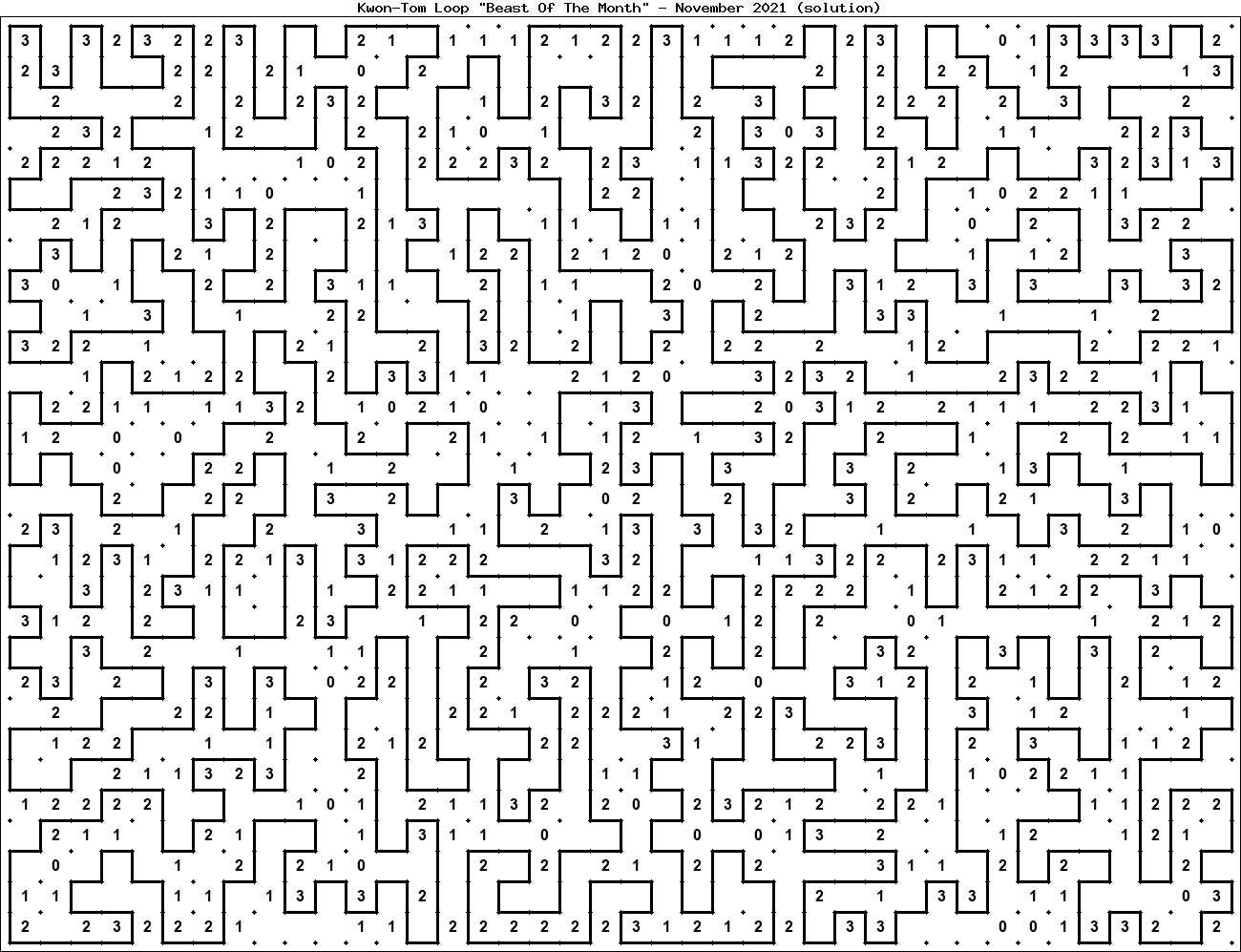 The "Beast Of The Month" is a very large puzzle, too big to display in the usual Kwon-Tom Loop interactive format. It's presented here as an image which you can print off and solve on paper.Printable Beast November 2021(solution)
