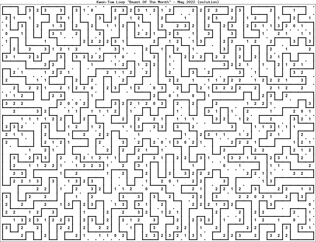 The "Beast Of The Month" is a very large puzzle, too big to display in the usual Kwon-Tom Loop interactive format. It's presented here as an image which you can print off and solve on paper.Printable Beast May 2022(solution)