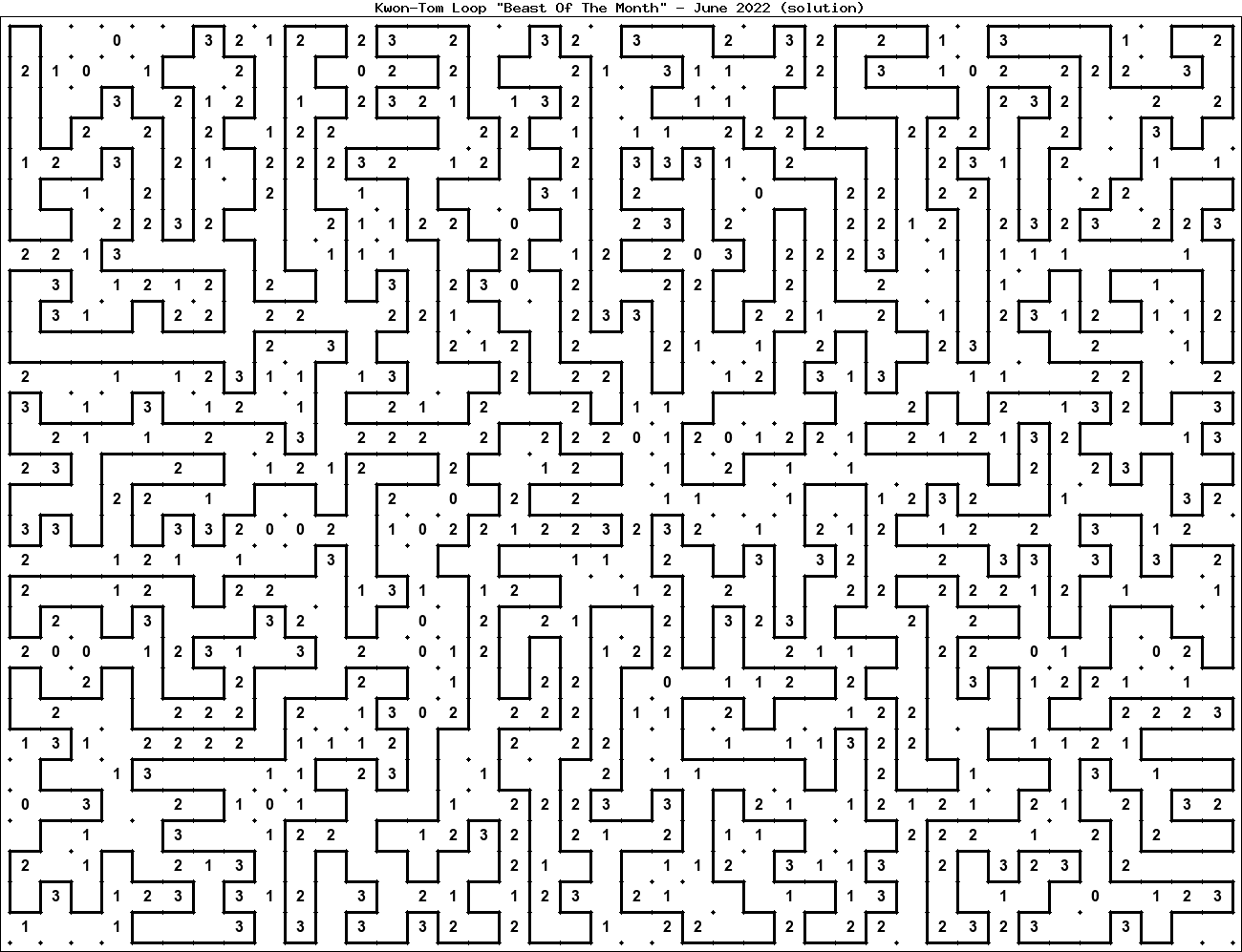 The "Beast Of The Month" is a very large puzzle, too big to display in the usual Kwon-Tom Loop interactive format. It's presented here as an image which you can print off and solve on paper.Printable Beast June 2022(solution)