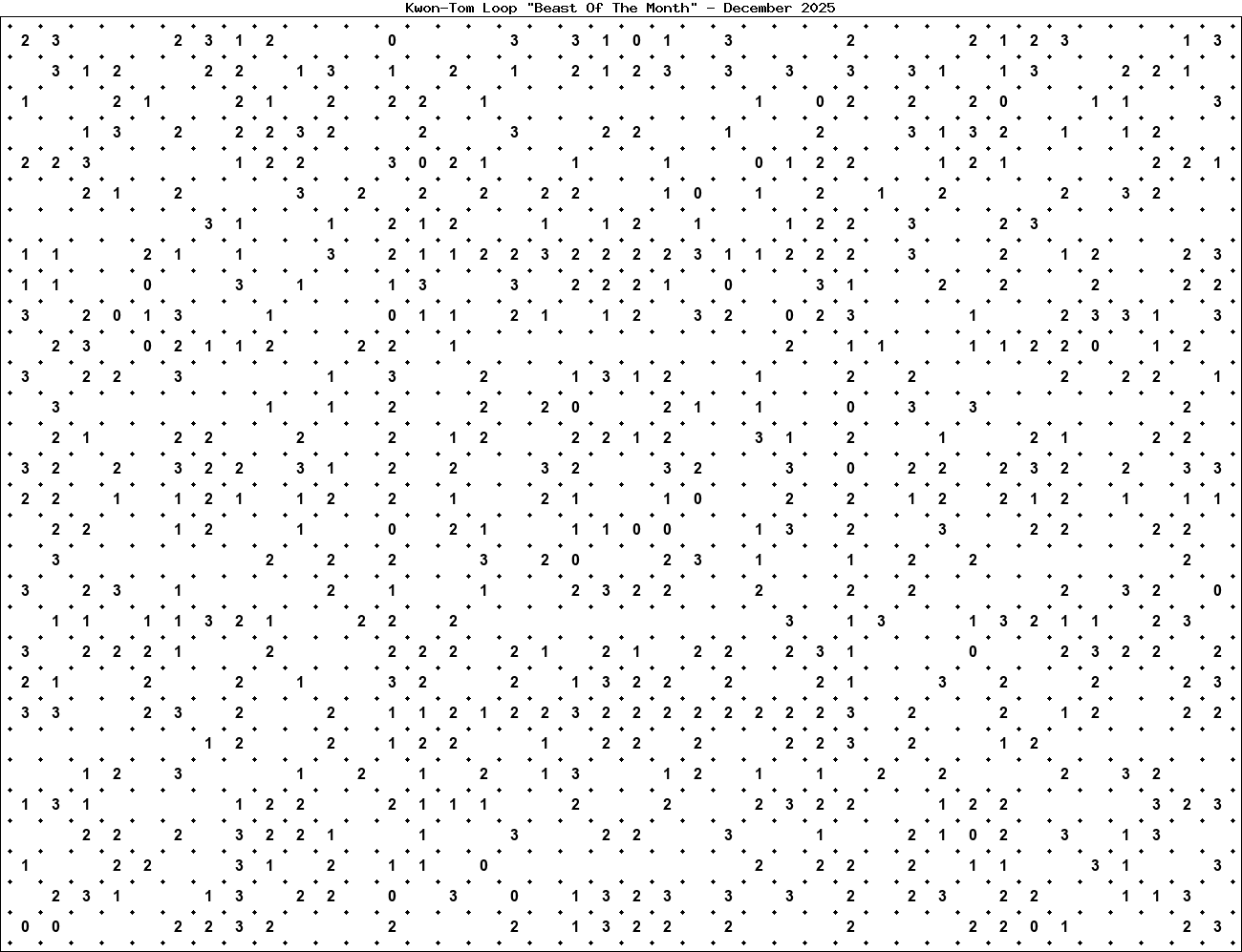 The "Beast Of The Month" is a very large puzzle, too big to display in the usual Kwon-Tom Loop interactive format. It's presented here as an image which you can print off and solve on paper.Printable Beast December 2025(solution)